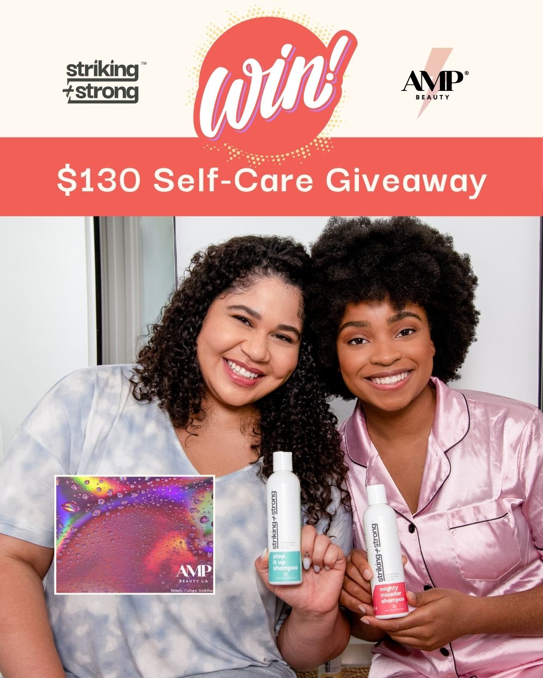 When you join, you’ll be automatically entered to win a $100 Self-Care Shopping Spree with AMP Beauty + Striking + Strong.